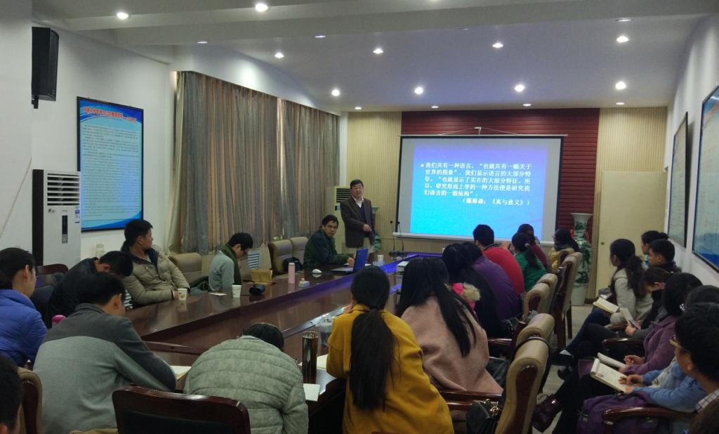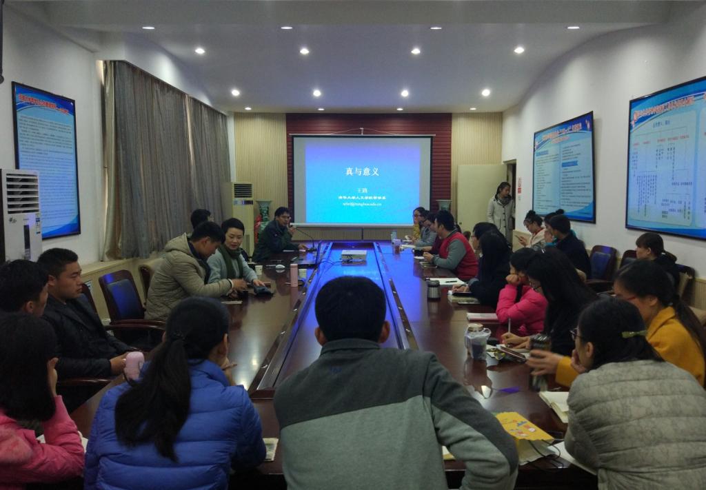 2016年11月10日上午,清华大学人文学院王路教授应邀来到公司,为公司师生主讲了题为“真与意义”的学术讲座,公司哲学系郭桥教授主持讲座,哲学相关专业师生参会。
