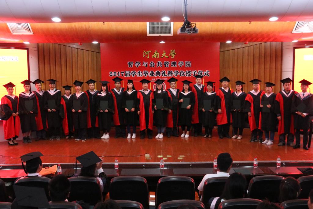 典礼在庄严的国歌声中拉开帷幕。汪来杰老师宣读了《bwin官网2017届本科毕业生学位授予决定》,并授予朱家明等65名同学法学学士学位,授予林钰钧等199名同学管理学学士学位,授予王鹏辉等23名同学哲学学士学位。