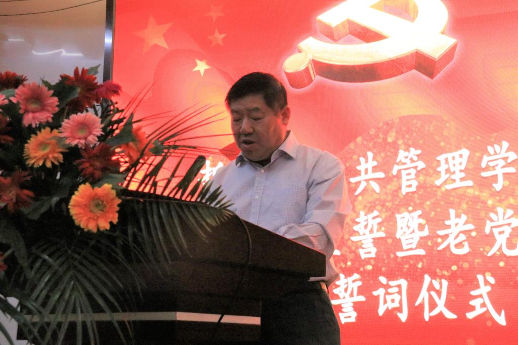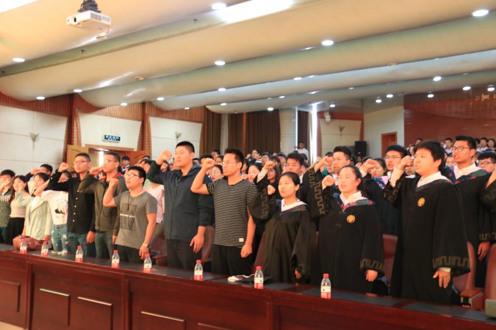 仪式在雄壮的国际歌中拉开帷幕。由党委委员马翠军宣读新党员名单,党员朱家明带领所有新党员进行了庄严神圣的入党宣誓。毕业生党员曾宽作为代表进行发言,他以自身经历为例,从思想、信念、担当三个方面,强调身为一名共产党员要培养党性,发扬不怕牺牲、敢为人先的精神,鼓励新一代党员要尽情挥洒青春热血,履行党员义务。员工代表崔佳在发言中鼓励大家要争做“四讲四有”的党员,积极营造良好的学风和班风。