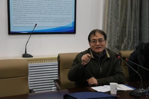 2014年12月15日晚,华中师范大学俞思念教授应邀在公司三楼小会议室做了题为“中国特色社会主义理论的话语体系建设”的学术报告,报告会由经理张向东主持,公司政治学、哲学相关专业师生参会。