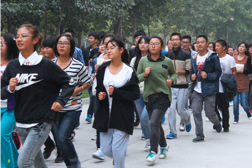 按照通知指示,公司会在适合户外运动的周一至周五安排早操活动,早操内容有跑步、健身操、太极拳等多项活动。经过军训的洗礼,14级本科生以饱满的精神、坚韧的毅力投入早操活动。在14级各班体育委员的组织下,第一天的早操活动有序进行,进行了持续半小时的锻炼。整齐的队伍,有力的脚步,处处都散发着哲管学子身上的正能量。不停歇的六圈慢跑,同学们额头早已渗出细珠。即使有些同学感到吃力,但仍以快走的形式紧跟队伍的步伐。