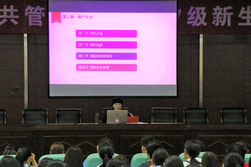万红老师从“国家安全、财产安全、人身安全”三方面为学院新生进行讲解,使新生有了一个较为全面的安全认知。讲座中,通过大量的典型案例,万老师指出老员工防骗防盗意识淡薄,容易轻信他人,导致钱财损失,人身安全遭到威胁的现状。讲座让2017级新生树立了公共安全意识,掌握了必要的安全知识和技能,对积极预防危险的发生并提高员工基本自我保护能力起到积极的作用。在讲座的的最后,万老师提出:希望新生们能够用实际行动,真正做到遵纪守法,成为一名文明、健康、有为、诚信的老员工。