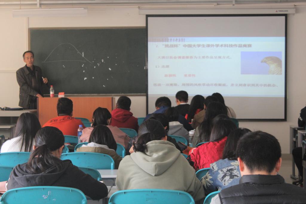 报告会伊始,付光伟老师就“挑战杯”的由来、举办时间以及要求等方面向大家介绍了“挑战杯”竞赛的具体情况,让大家对“挑战杯”有一个清晰的认识。随后,向大家明确了“挑战杯”选题的核心标准:重要性和新颖性,为正在进行竞赛资料准备的同学们提供实质性建议。付光伟老师还着重强调了“新”的重要性,他提醒同学们,作为新时代的青年人,应当追寻新时代的潮流,以敏锐的眼光去捕捉现实中自己所需要的信息。此外,在互联网信息化高度发达的今天,同学们应当学会利用手中的资源,学会在进行竞赛准备的过程中,利用网络查寻自己所需要的信息。随后付光伟老师就大小挑的作品呈现形式与大家进行交流探讨,告诉大家要选择适合自己的方式来完成作品。报告会的最后,付光伟老师还耐心地给予大家一些参加“挑战杯”的建议,为参加此次竞赛的同学指明了方向。