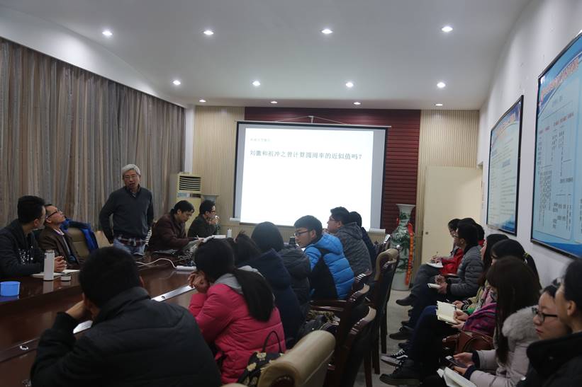 2017年12月12日下午,中国逻辑学会副会长、教育部人文社科研究基地中山大学逻辑与认知研究所所长、中山大学哲学系教授、博士生导师鞠实儿先生应邀来到公司,在哲管院三楼小会议室作了题为“刘徽和祖冲之曾计算过圆周率的近似值吗”的报告。公司郭桥教授、杨红玉副教授、程献礼博士和哲学专业的研究生等人参加报告会。