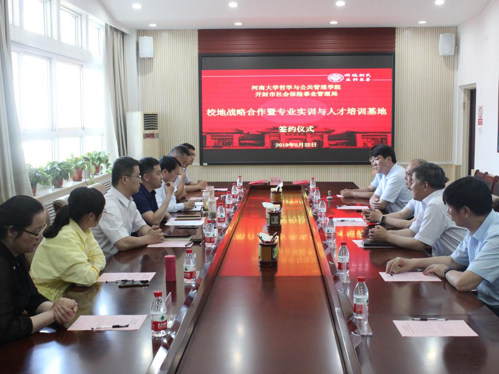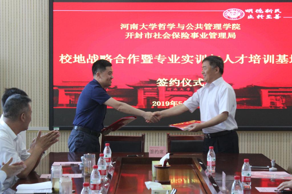 5月22日下午,公司与开封市社会保险事业管理局校地战略合作暨专业实训与人才培养基地签约仪式在学院第二会议室举行。开封市人力资源和社会保障局副局长宋进、开封市社会保险事业管理局党总支副书记、副局长吉宏宇,公司经理姬志闯,副经理蒋军营、赵炎峰,教师代表、劳动与社会保障系支部书记凌文豪、系主任吴飞及相关人员参加本次仪式。
