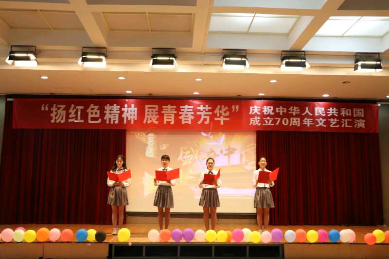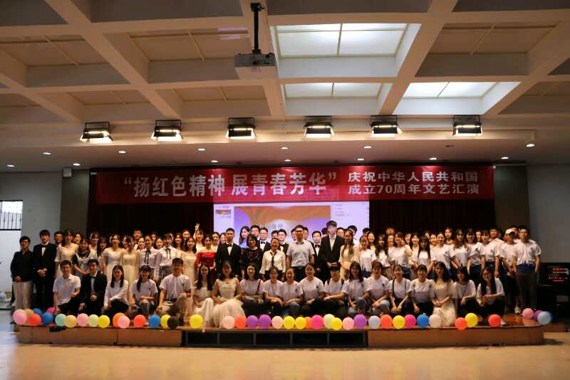 2017级“扬红色精神,展青春芳华”庆祝中华人民共和国成立70周年文艺汇演在优美的集体舞中拉开序幕。磅礴气势的诗歌朗诵《中国人,不跪的人》、《五四的火炬》、《盛世中国》展现了中国民族站起来、富起来到强起来的豪迈。话剧《钥匙》情节一波三折,透着深意。历史时装秀,经典与现代结合,每一组走秀,都代表着一个时代的印记,引人深思。唐圣烽激情演绎《红旗飘飘》表达了他对祖国母亲70岁生日的深深祝福。三句半《老员工活》,幽默风趣不失创新活力,既是对老员工活的生动总结,又表现出青年人敢于追梦、敢于圆梦的执着精神。合唱《哲学有点甜》、《和你一样》、《勇气》既是留恋过去的美好,也是赋予现在的勇气,更是期待未来的光芒。