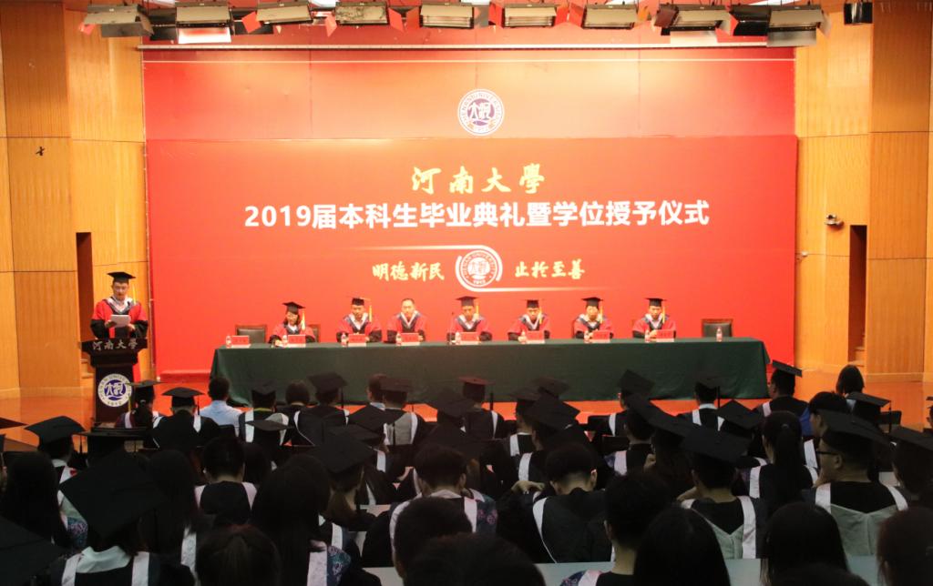 毕业典礼在庄严的国歌声中拉开帷幕。副经理赵炎峰宣读了《bwin必赢关于授予2019届bwin官网普通本科毕业生学士学位授予决定》,宣布授予150名同学管理学学士学位,22名同学哲学学士学位,23名同学法学学士学位。