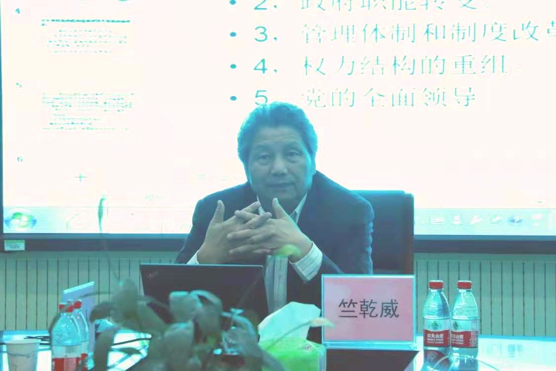 本次讲坛分为专题报告、现场互动、主持人点评三个环节。首先竺乾威教授作了题为“政府职能转变”的学术报告。竺教授围绕“政府机构改革的回顾、政府职能的转变、政府机构改革的未来走向”等问题为与会师生提供了一场学术盛宴。其次与会师生就政府职能转变热点问题与竺教授进行交流讨论。最后是主持人刘辉老师对本次讲坛做了总结与点评。会后竺乾威教授寄语中原公共管理讲坛并和员工代表合影留念。