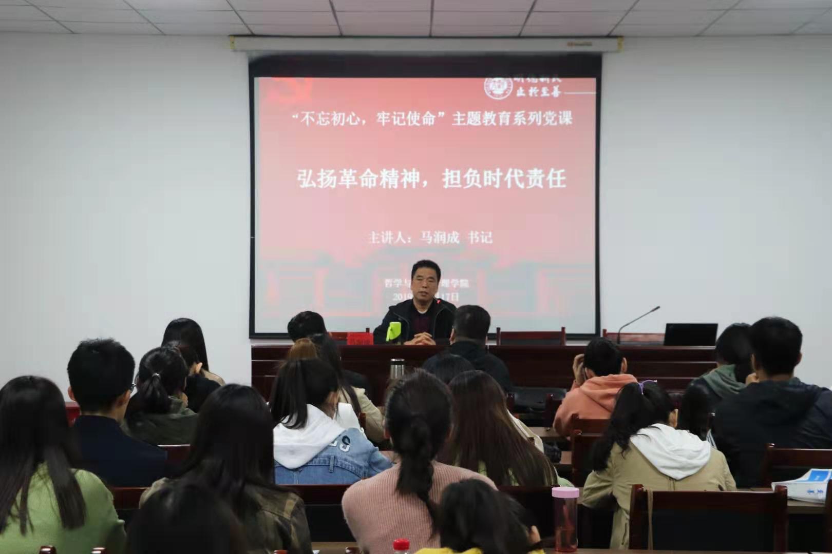 10月17日,公司党委书记马润成同志以《弘扬革命精神,担负时代使命》为题,为学院全体员工党员上了一堂深刻生动的党课。马润成以讲故事的方式,娓娓讲述了“开国元帅朱德放弃优越,追求革命、追求真理”、“革命烈士方志敏贫贱不移、威武不屈、献身革命”、“‘航天之父’钱学森淡泊名利、艰难回国”、“革命领袖邓小平解放思想、摒弃崇拜”等先进事例,号召大家要沿着英雄的足迹,追寻先烈的气节;激励大家要勇担使命,为中华民族伟大复兴中国梦砥砺奋进。同时,他以张国焘因自身优势同党中央分裂作为反面事例,使同学们更能明确自身的使命和担当。他指出,作为新时代的青年,一定要要担负起时代责任、努力奋进新时代。最后,马润成表达了对员工党员的殷切希望,要励志成才,要学典型模范,要自我革命。马润成旁征博引、贯通古今,授课内容翔实丰富,话语幽默诙谐又不失深刻,取得良好效果。