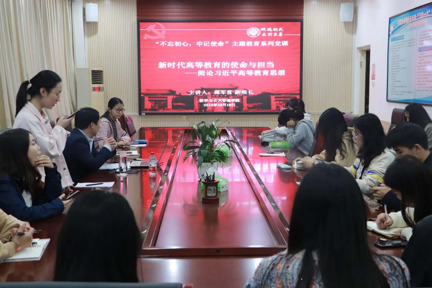 骆春丽副书记、蒋军营副经理、赵炎峰副经理分别以《守初心,担使命,奋力拼搏成就青春梦想》、《新时代高等教育的使命与担当》、《“文化自信”与优秀传统文化复兴》为题,讲授了专题党课。