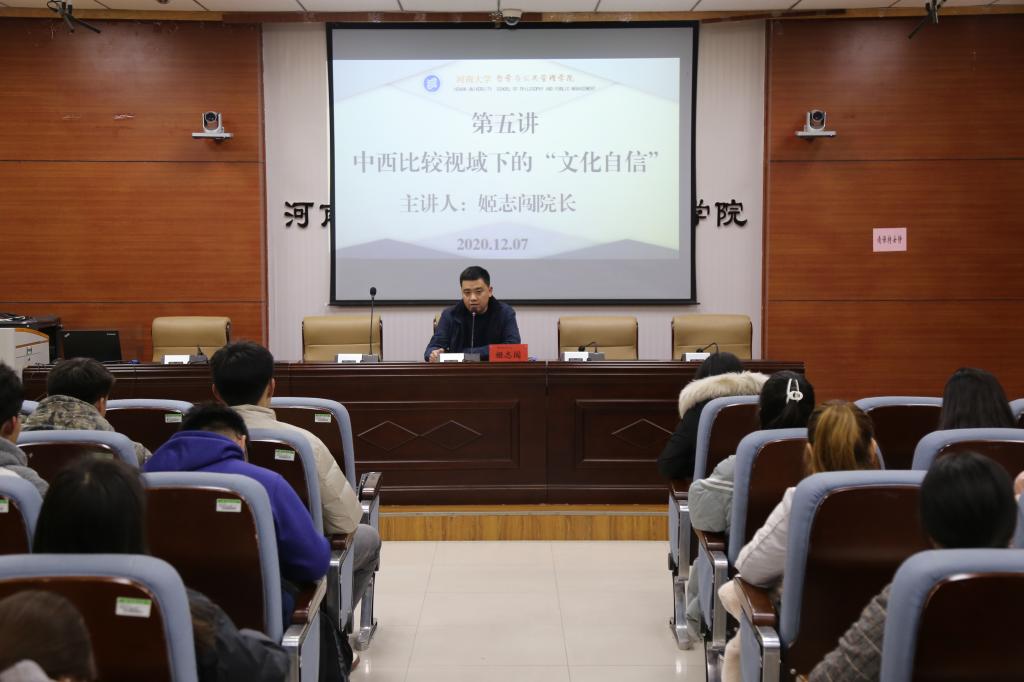 12月7日下午,学院经理姬志闯同志以《中西比较视域下的“文化自信”》为题为入党积极分子上党课。首先他提出我们在认清文化自信概念之前需要先明确我们的文化是什么样本,他认为我们的文化有三个支撑点即中华优秀传统文化、马克思主义、西方文化。三种文化在中国文化土壤上互相借鉴、优胜略汰形成了我国的现有文化。接着姬志闯通过两希文明、基督教的发展以及罗马的法律和政治对西方文化进行了清晰的界定。之后他通过中西方小孩吃苹果这一个幽默风趣又通俗易懂的故事让同学们领略到了中西方的文化差异,并进行总结,他指出西方文化、海洋文化是重实验观察和理性的,而东方文化、大陆文化是重视经验总结的。“互相借鉴”是中西方文化沟通的方式,由此引出思考,在今天这个快速发展的时代,中华优秀传统文化该如何发挥文化魅力,如何对人类命运共同体做出贡献。最后他提出,马克思主义提供的融合方法是我们文化自信的来源,中国优秀传统文化、马克思主义中国化与西方文化三者的有机融合是我国提高文化自信的有效方法。