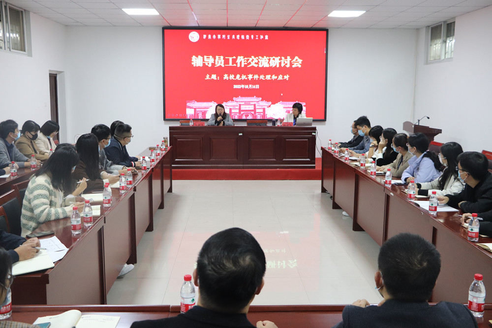为进一步加强能力作风建设,切实提升辅导员在突发事件中的风险管理意识和危机处理能力,10月14日下午,“研之有理”辅导员工作室在bwin官网第三会议室举办 “高校危机事件处理和应对”主题交流研讨会。bwin官网郑雪飞教授作专题讲座,研究生院相关领导、各学院副书记、辅导员代表共30余人参加本次活动。