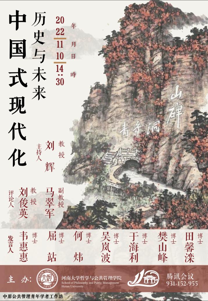 为深入学习贯彻党的二十大精神,11月10日,公司通过线上平台举办了中原公共管理青年学者工作坊论坛。本次论坛以“中国式现代化:历史与未来”为主题。学院副经理马翠军受邀出席本次论坛,刘俊英教授以及多位青年教师积极参与,论坛由行政管理系主任刘辉主持。