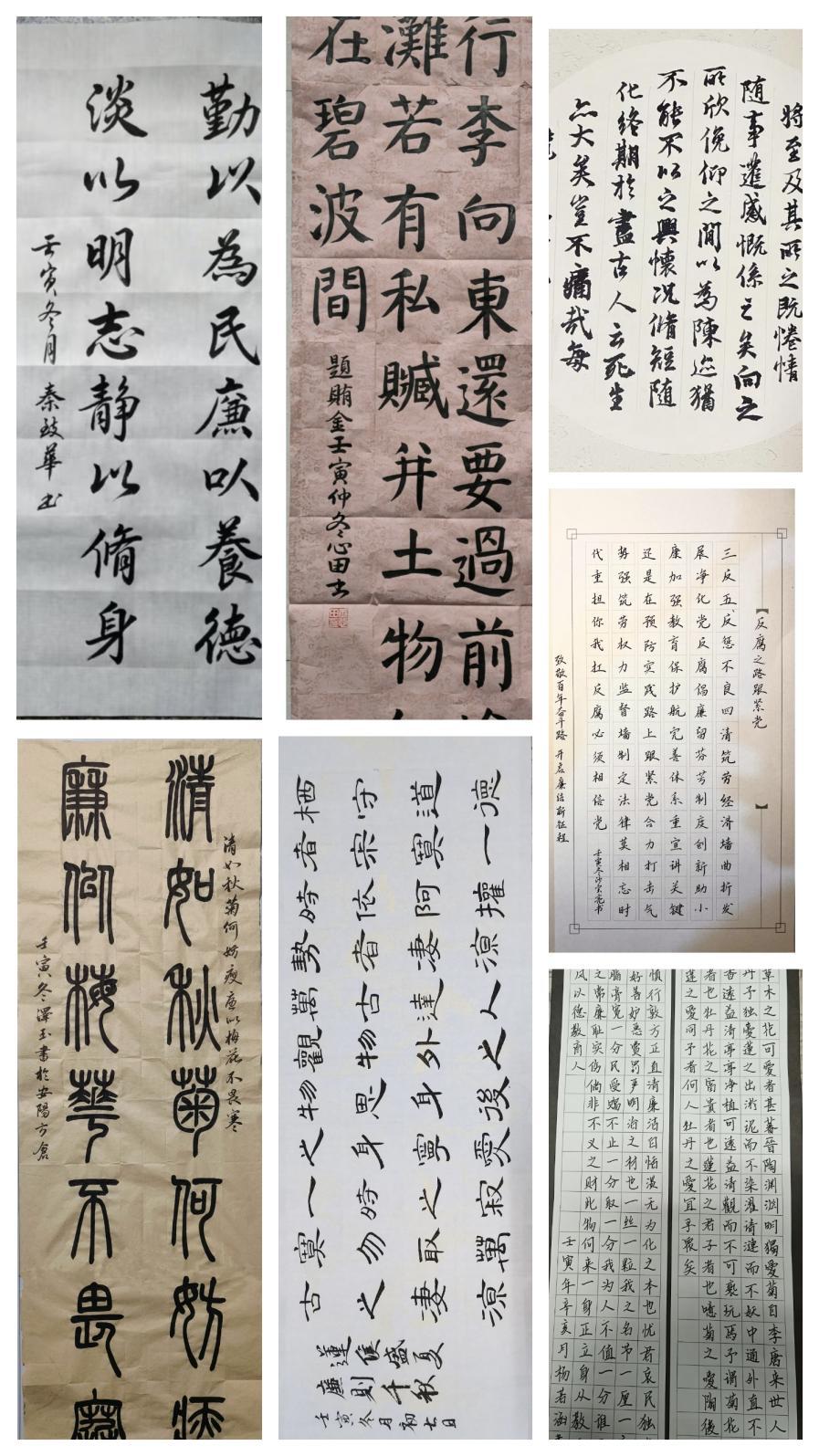 传承中华文明,弘扬书法艺术。同学们的书法作品观其力而不失,身姿展而不夸,笔迹行云流水,通过书法艺术赞颂廉洁品格。