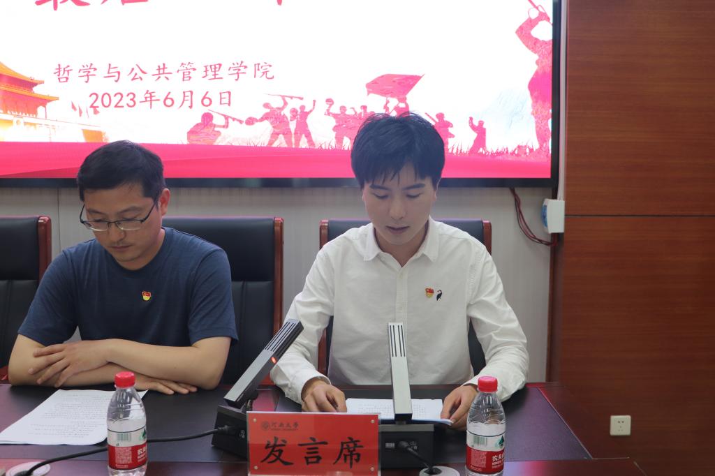 回顾入党经历,感恩党的培养。2019级毕业生党员代表李源以党的理论学习者、传播者和践行者三个角色切入,分享了入党以来的历程与感悟,向公司党委的培养与呵护表示感谢。作为学习者,他以组织委员身份领学理论,依托青马平台学习党的精神;作为传播者,他参与博雅志愿服务宣讲团面向多省宣传党的理论;作为践行者,他将前往祖国西部敦煌开展支教,用行动在西部大地书写河大“自强不息,百折不挠”的精神气概。他号召各位毕业生党员以优秀党员标准严格要求自己,坚定理想信念,敢打敢拼创事业,不负老师、学院、学校培养。