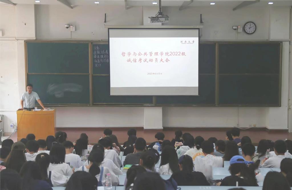 为加强本科学风建设,严肃期末考风考纪。6月15日,公司2022级本科生在综合楼1201教室召开诚信考试动员大会,本科2022级辅导员王天宇和2022级全体员工参加会议。