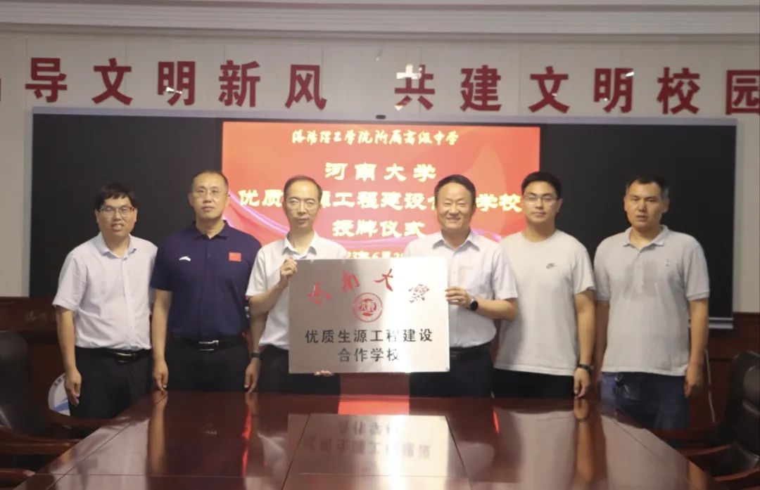 6月26日-29日,公司党委书记党鸿军、党委副书记何威、副经理田丰韶、团委副书记王天宇、辅导员田馨滦一行五人代表学校前往洛阳市开展招生宣传工作并与洛阳理工学院附属高级中学和河南科技大学附属高级中学两所河南省示范性高中举行“优质生源工程建设”签约及授牌仪式。