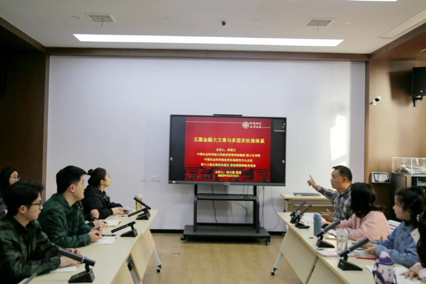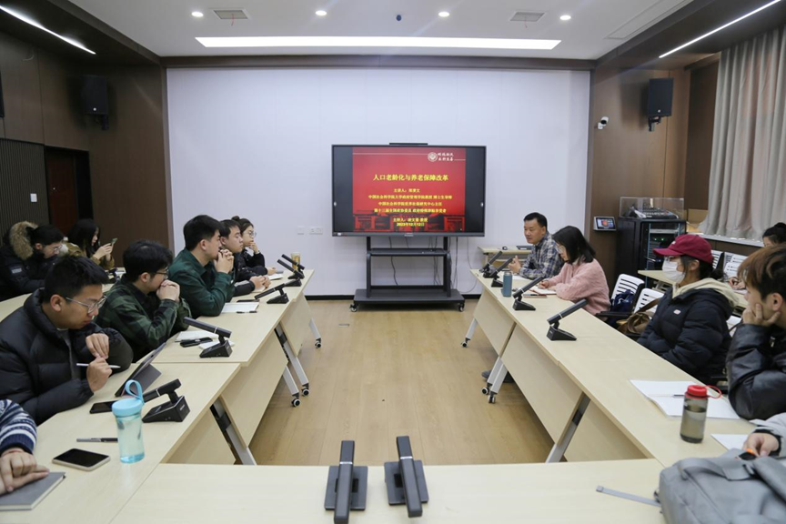 12月12日,应公司邀请,中国社会科学院大学政府管理学院郑秉文教授在线上为公司师生分别作了题为《人口老龄化与养老保障改革》和《五篇金融大文章与多层次社保体系》的学术讲座。此次讲座由公司劳动与社会保障专业凌文豪教授主持,劳动与社会保障、行政管理与社会工作专业部分青年教师、研究生通过线上线下相结合的方式共同参加。